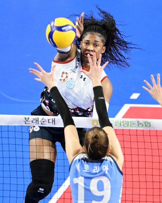 모마는 양 팀 최다인 24점을 몰아쳤다. 공격 성공률도 65.71%를 기록했다. 정지윤과 양효진은 각각 12점, 13점씩 보탰다.