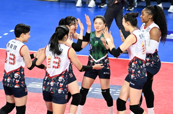 지난 시즌 통합우승에 빛나는 현대건설이 1위 싸움에 불을 지폈다. 연달아 세 경기를 잡아내며 2위와 격차를 좁혔다.