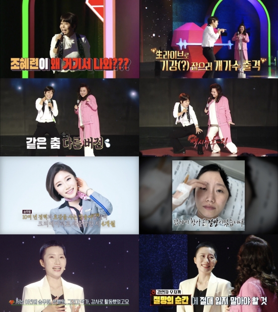 조혜련은 히트곡 '아나까나'를 라이브로 부르며 열정적인 무대를 선보이며 등장부터 스튜디오 분위기를 뜨겁게 달궜다. 그녀는 박미선, 장도연 등 동료 개그우먼들과 자신을 비교하며 느꼈던 불행과, 스스로를 괴롭혔던 과거를 돌아보며 "지금 생각해보면 내가 나를 너무 괴롭혔다"고 솔직하게 고백했다.