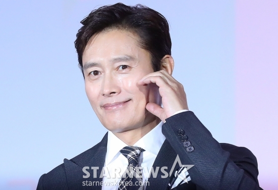 배우 이병헌이 9일 오전 서울 중구 동대문디자인플라자에서 진행된 넷플릭스 시리즈 '오징어 게임 시즌2' 제작발표회에 참석해 포즈를 취하고 있다.