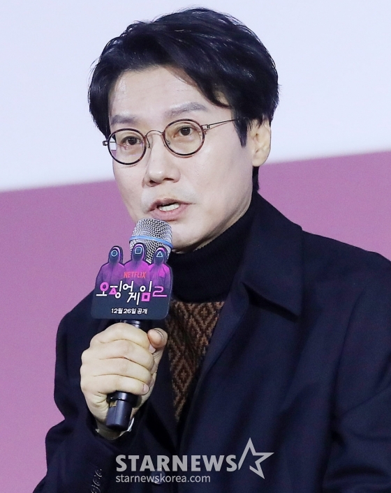 황동혁 감독이 9일 오전 서울 중구 동대문디자인플라자에서 진행된 넷플릭스 시리즈 '오징어 게임 시즌2' 제작발표회에 참석해 인사말을 하고 있다.
