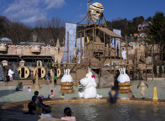 핀란드 인기 캐릭터인 무민 가족이 겨울 여행을 왔다는 스토리로 꾸며진 올 겨울 캐리비안 베이의 메인 스팟은 몸은 따뜻하고 머리는 시원하게 노천욕을 즐길 수 있는 야외 어드벤처 스파 지역이다.