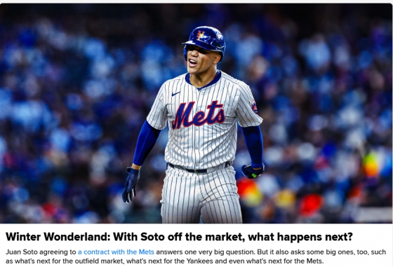 아직 뉴욕 메츠 구단의 공식 발표는 나오지 않은 상황. 만약 공식 발표가 나온다면 소토는 전 세계 스포츠를 통틀어 최고 몸값의 주인이 된다.