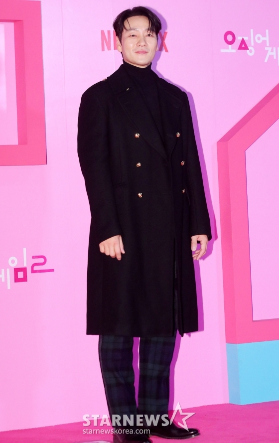 배우 박해수가 9일 오후 서울 중구 동대문디자인플라자에서 진행된 넷플릭스 시리즈 '오징어 게임 시즌2' 핑크카펫에 참석해 포즈를 취하고 있다.