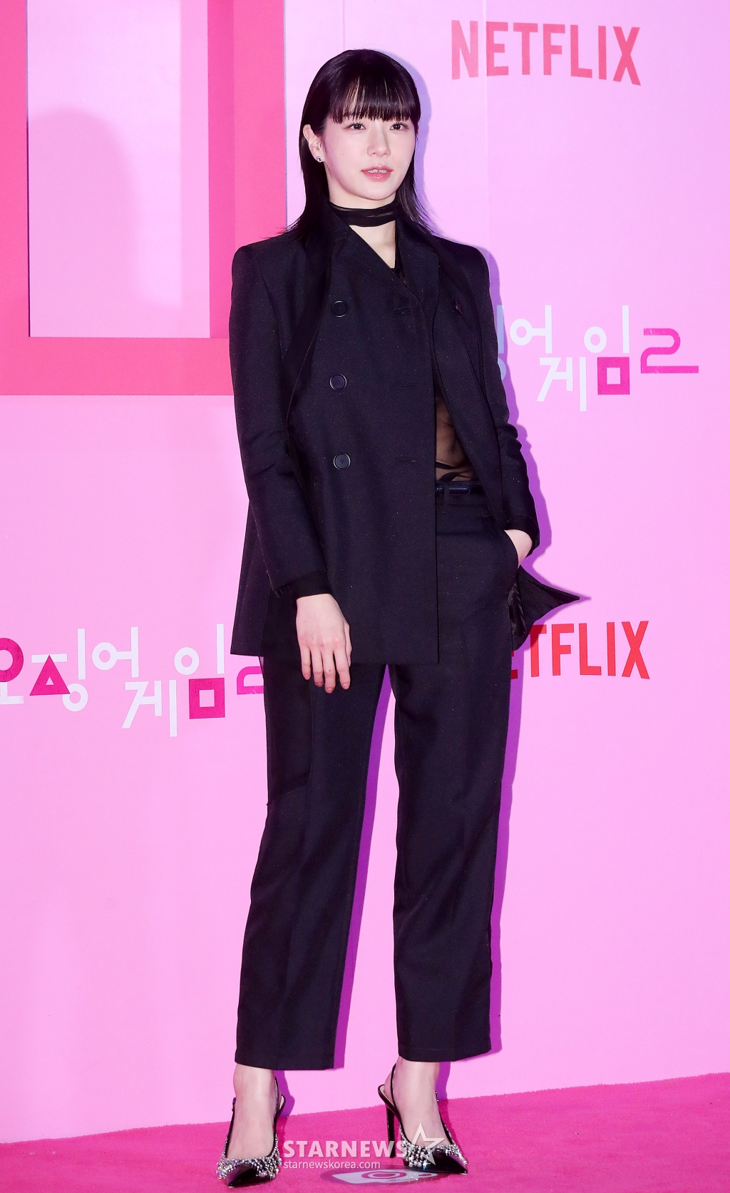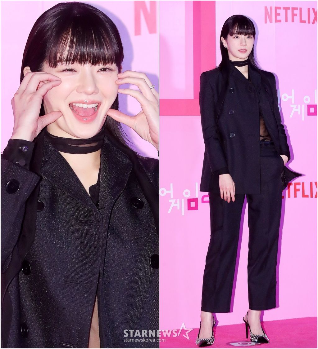 배우 박규영이 9일 오후 서울 중구 동대문디자인플라자에서 진행된 넷플릭스 시리즈 '오징어 게임 시즌2' 핑크카펫에 참석해 포즈를 취하고 있다.