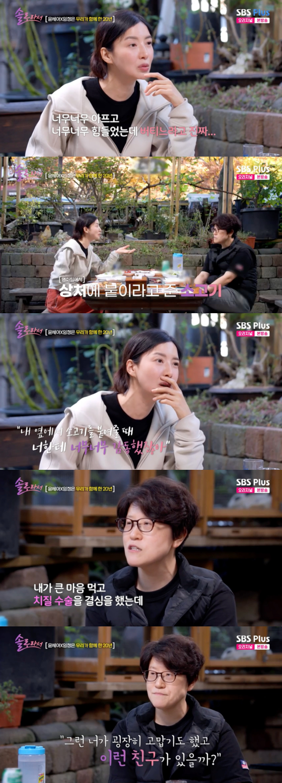 10일 방송된 SBS플러스, E채널 예능 프로그램 '솔로라서'에서는 윤세아가 20년 지기 매니저이자 동갑내기 절친과 등산에 나선 모습이 그려졌다.