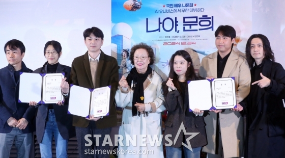 나문희에게 고마운 마음을 전한 박 대표는 "영화 선정 때 주안점을 둔 게 대개 AI 영화가 판타지인데 일상의 모습을 우선적으로 생각했다. 스타 배우가 등장하는 AI 영화는 최초라고 알고 있다. 저는 '안시성' 등 영화 제작을 평생 했던 사람인데 제 비전은 새로운 시대에 AI로 장편 영화를 만드는 날이 오길 꿈꾼다. 그럼 감독, 창작자들이 더 많은 영화를 만들 수 있지 않을까 싶다. 이 작은 걸음이 큰 결실이 될 거라고 본다. 벅찬 감정이 든다"고 말했다.