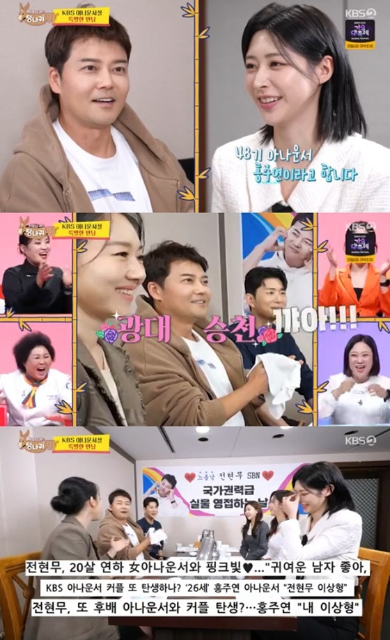 신지의 빈자리를 채우기 위해 출격한 홍주연은 최근 KBS 2TV 예능 프로그램 '사장님 귀는 당나귀 귀'에서 20살 연살인 방송인 전현무를 이상형으로 지목하고 러브라인을 형성해 열애설이 불거진 바 있다.