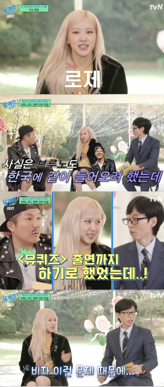 로제, 브루노 마스와 '유퀴즈' 동반 출연 무산 고백 "비자 문제 때문에.."