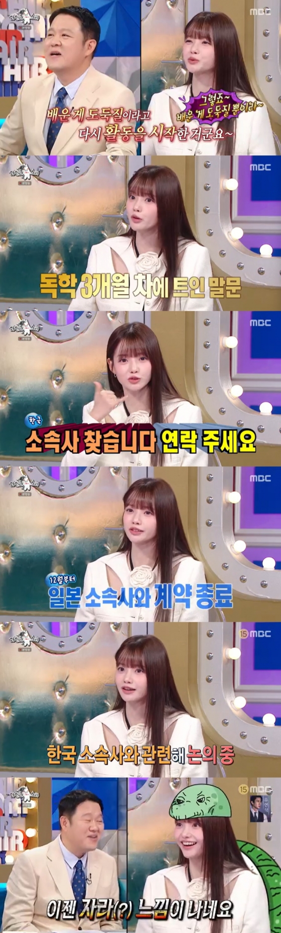 하연수는 이날 '라스' 출연을 위해 일본 소속사에 설득했다며 "(회사에서) '이거 왜 가는 거냐'라고 해서 내가 '라스는 한국의 장수 프로고 나가면 화제가 된다'고 해서 동행 없이 오랜만에 왔다"고 말했다. 한국 활동에 복귀하는 거냐고 묻자 그는 "회사 찾는다. 연락 달라"고 영상편지를 남겼다.