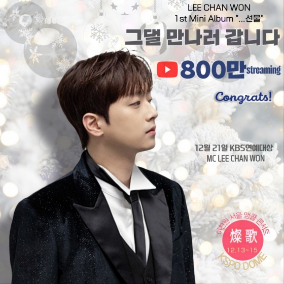 가수 이찬원의 '그댈 만나러 갑니다' 음원 영상이 800만 뷰를 달성하며 인기를 빛냈다.