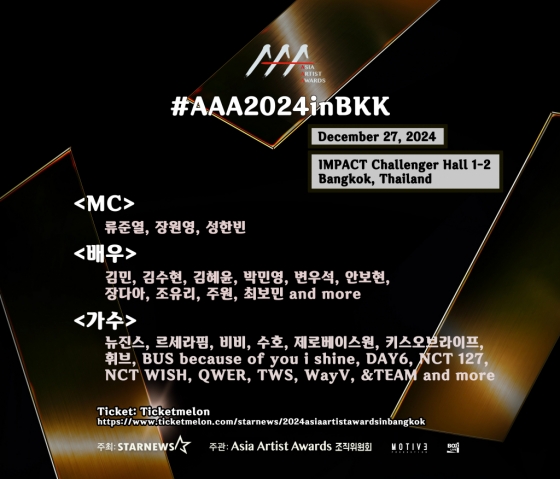 스타뉴스가 주최하고 AAA 조직위원회, 모티브 프로덕션(MOTIVE PRODUCTION), 박스 라이브(BOX LIVE)가 주관하는 'AAA 2024'의 티켓 예매는 지난달 30일 정오 태국 티켓멜론(Ticketmelon)과 중국 ShowStart, Damai를 통해 시작됐다.