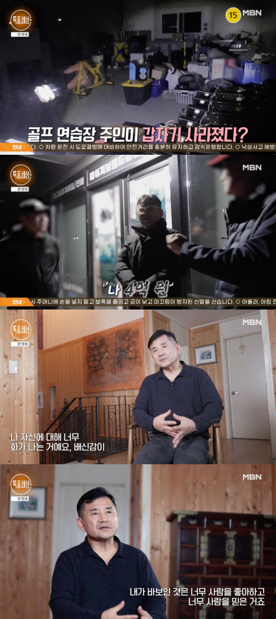 이날 황우연은 늦은 밤 한 골프장에 방문했다. 주인이 사라진 골프장에서 여러 사람들과 함께 망연자실한 표정을 짓던 그는 믿었던 지인으로부터 사기를 당했다고.