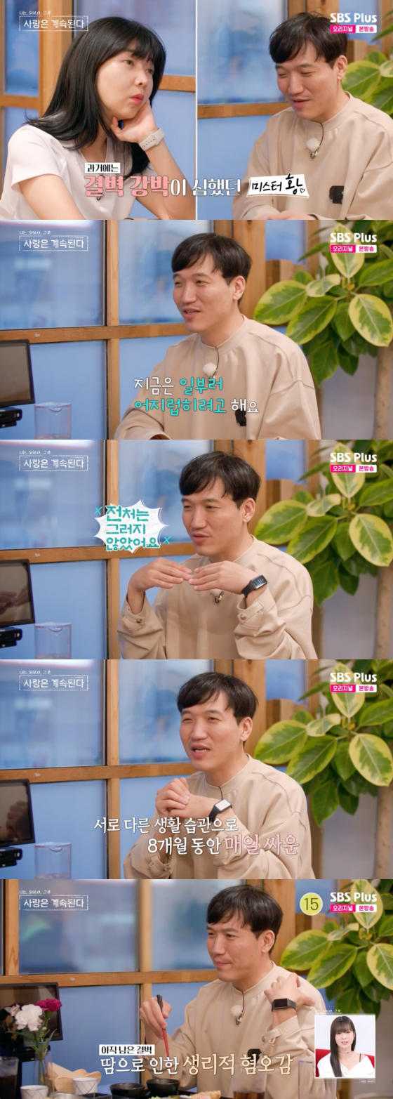 12일 방송된 ENA, SBS플러스 예능 프로그램 '나는 솔로, 그 후 사랑은 계속된다'에서는 미스터 황이 10기 영자에게 결벽증을 고백하는 모습이 그려졌다.