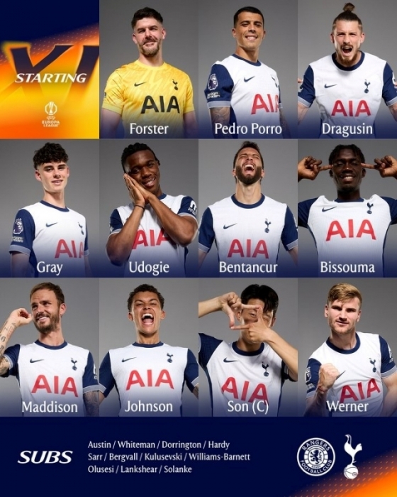 토트넘은 4-2-3-1 포메이션을 가동했다. 최전방 원톱 손흥민을 필두로 2선에서 티모 베르너, 제임스 매디슨, 브레넌 존슨이 뒤를 받혔다. 중원은 이브 비수마, 로드리고 벤탄쿠르가 형성했다. 포백은 데스티니 우도기, 라두 드라구신, 아치 그레이, 페드로 포로가 구성했다. 골키퍼 장갑은 프레이저 포스터가 꼈다.