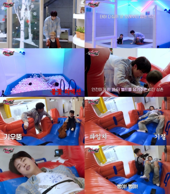 키즈 카페에 도착해서도 태하를 붙잡고 조심조심 계단을 내려가도록 하고 신발을 벗겨주며, 함께 놀이를 하면서도 태하가 다칠까봐 태하의 몸에서 쏟아진 굵은 모래를 얼른 주워 청소하는 등 진의 세심한 면모가 드러났다. 귀엽고 따뜻한 진과 태하의 모습은 보는 이들을 힐링시켰다.