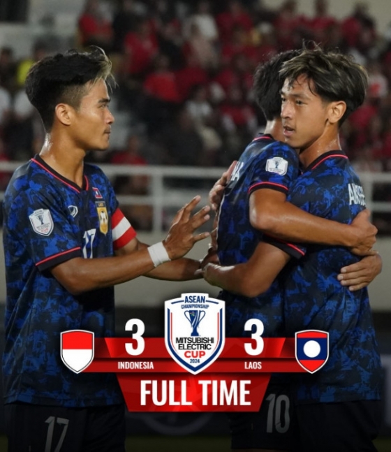인도네시아는 12일(한국시간) 인도네시아 수라카르타 마나한 경기장에서 열린 '2024 아세안축구연맹(AFF) 미쓰비시일렉트릭컵(미쓰비시컵)' B조 조별리그 2차전에서 라오스에 3-3으로 비겼다.