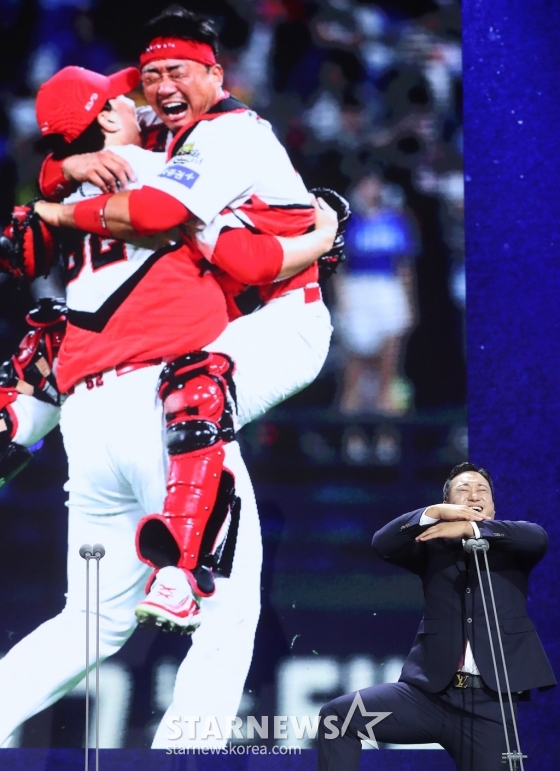 올해 선정된 사진은 KIA 김태군이 한국시리즈에서 우승을 확정 지으며 정해영과 포옹하며 기뻐하는 장면이다.