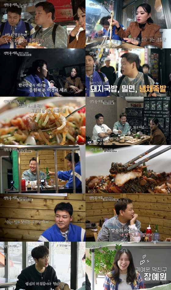 그러면서도 전현무는 "돈이 (일하는) 이유이긴 하지만 1순위는 아니다. 몸은 힘들어도 (일을 하면) 살아있음을 느낀다. 그게 나의 행복"이라며 자신만의 '추구미'를 강조했다. 그 사이 가지 버터구이, 불고기, 튀김, 알탕까지 계속해서 나오자, '먹브로'는 연신 감탄하며 접시를 싹 비웠다. 이로써 '시청자계획'과 '곽준빈계획'이 잘 버무려진 부산 먹투어가 마무리 됐다.