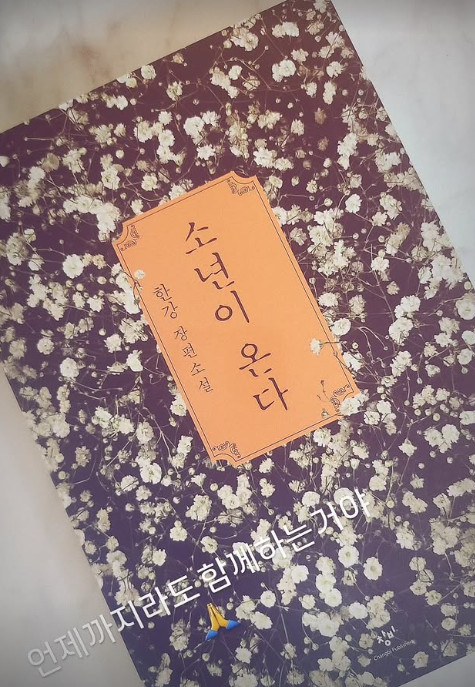 공개된 사진 속엔 한강 작가의 '소년이 온다'가 담겨있다. '소년이 온다'는 1980년 5월 18일부터 열흘간 있었던 광주민주화운동 당시의 상황을 담았다. 비상계엄령 선포 후 해제됐고, 윤석열 대통령의 탄핵소추안이 가결된 상황을 빗대어 표현한 것.