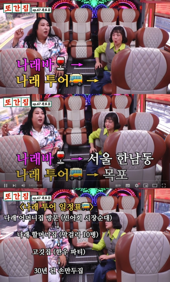 풍자는 "연예계 소문이 있다. 박나래 투어라고. 나래바는 서울 용산구 한남동이고 나래투어는 목포"라고 하자, 박나래는 "엄마 집을 들르고 할머니 집에 가서 막걸리 10병 마시고 고깃집 가서 한우 먹는다. 옆에 있는 손만두 집이 있다. 목포 30년은 스타트업이다. 기본 50년, 100년이어야 한다. 도연이랑 기루 언니를 제일 먼저 데리고 갔다. 혼내고 싶을 때 데리고 가고 싶은 집"이라고 전했다.