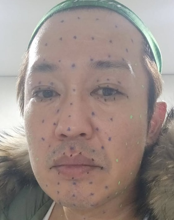 공개된 사진 속 허성태는 얼굴에 점이 가득 찍혀 있다. 독특한 분장을 한 채 무표정을 하고 있는 그의 모습이 웃음을 자아낸다.
