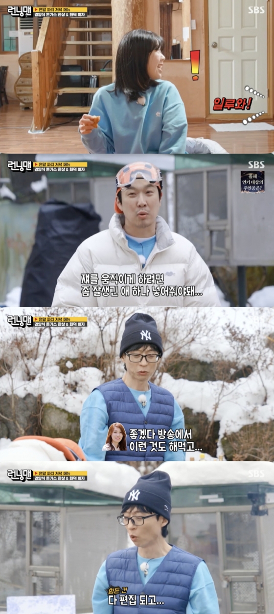 연말 파티 저녁 메뉴는 경양식 돈가스와 화덕피자로 '런닝맨' 멤버들이 직접 요리에 나섰다. 그러나 길어진 요리 시간에 지친 지예은은 몰래 숙소로 들어가 카메라 감독과 함께 과자를 먹으며 '자체 휴식 시간'을 만들었다.