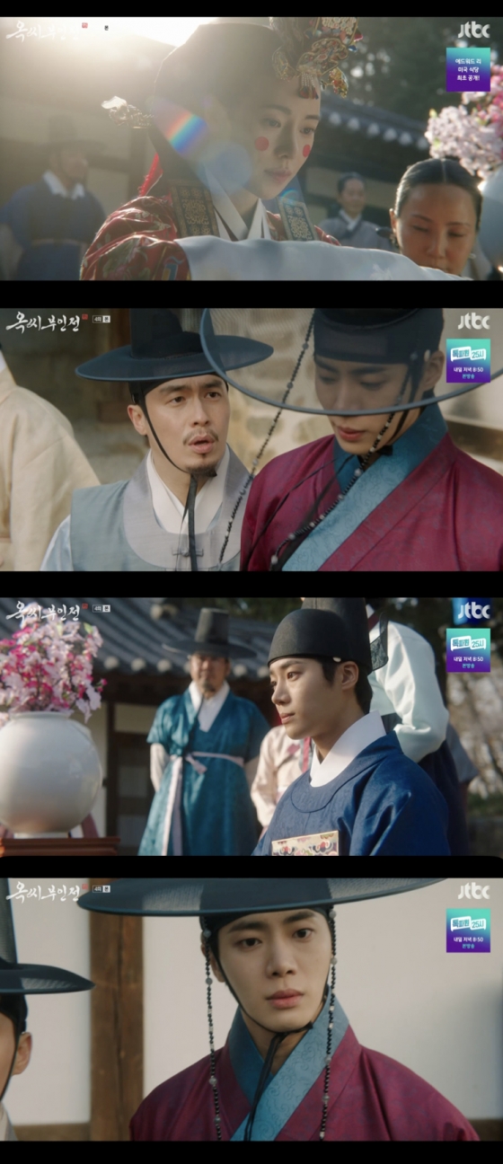 15일 방송된 JTBC 토일드라마 '옥씨 부인전' 4회에서는 성윤겸(추영우 분, 송서인 역)과 혼사를 치룬 옥태영(임지연 분)의 모습이 그려졌다.