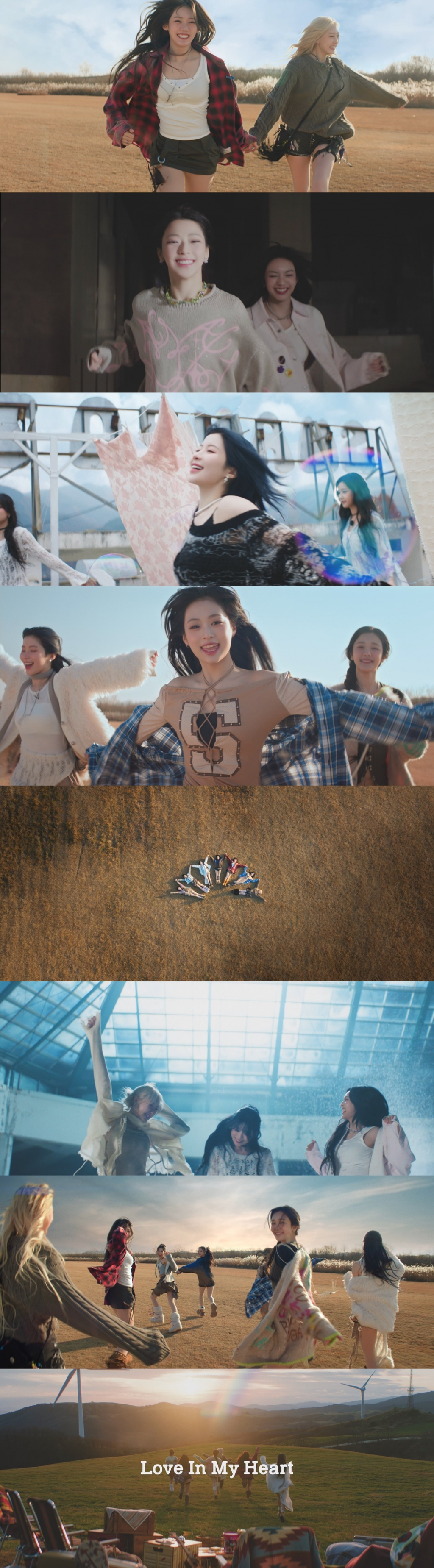 16일 공개된 'Love In My Heart' 뮤직비디오는 아련한 무드, 아날로그 풍의 감각적 영상미로 완성됐다. 갈대밭 무성한 공원, 탁 트인 시야의 언덕, 빈티지 감성의 아지트 등 다양한 배경에 녹아든 싱그러운 멤버들의 모습으로 곡의 매력을 배가했다.