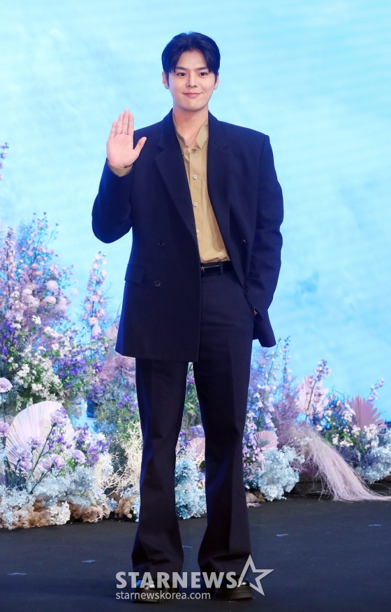 배우 려운이 16일 오후 서울 구로구 더세인트웨딩에서 진행된 지니TV 오리지널 드라마 '나미브' 제작발표회에 참석해 포즈를 취하고 있다.
