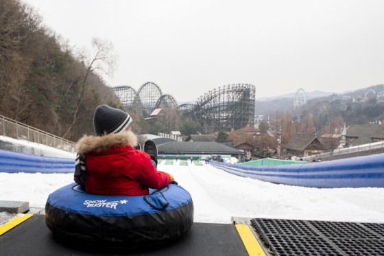 오직 겨울에만 경험할 수 있는 에버랜드 스노우 액티비티의 대표 선수는 스릴 강도별로 3개 코스를 즐길 수 있는 눈썰매장 스노우 버스터다.