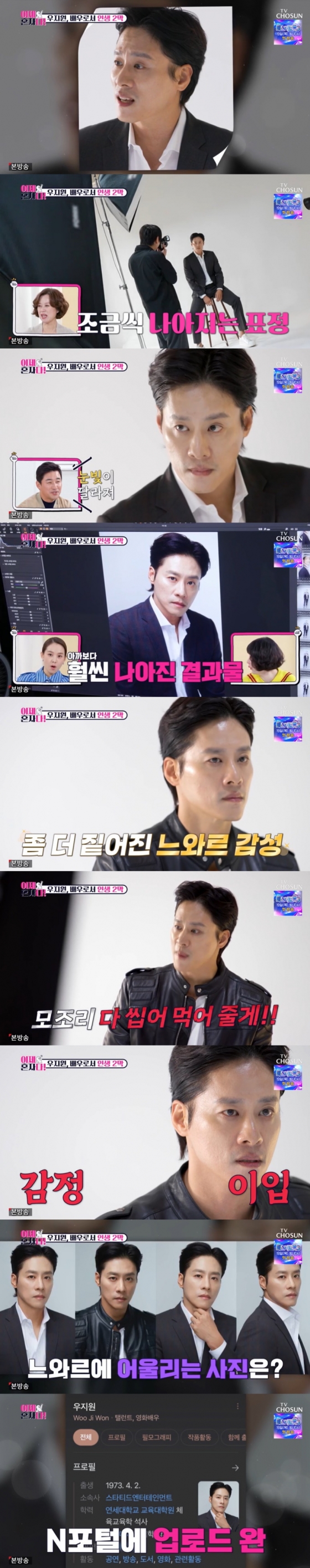 그러나 우지원은 앞서 조재윤과 연습한 연기를 떠올리며 점차 몰입하는 모습을 보였다. 사진작가도 "표정 좋아요 선생님"이라고 칭찬했고, 결국 만족할 만한 누아르 감성의 프로필 사진이 나왔다.