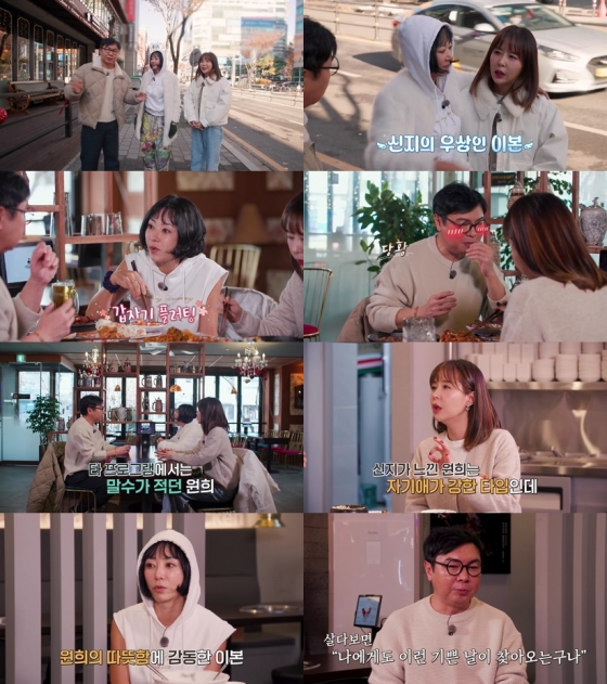 한편 신지는 임원희에게 "데뷔 26년 차, 여러 음식 프로그램을 나왔지만 오빠는 출연자를 가장 편하게 해주시는 것 같다"며 "진정성과 따뜻한 매력을 지녔는데 자기애가 강해 스스로에 대한 기준이 높아 연애를 어려워 하시는 것 같다"며 응원의 메시지를 전한다. 이야기를 듣던 임원희는 "이 프로그램을 통해 좋은 사람과 좋은 밥 세 끼를 먹으며 느껴지는 행복에 감사하고 있다. 오늘도 두 분의 좋은 이야기에 긍정적 에너지를 받아간다"고 화답해 훈훈한 분위기를 만들어낸다. 17일 오후 7시 방송.