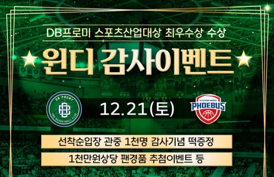 프로농구 원주 DB프로미가 '대한민국 스포츠산업대상' 수상 기념 감사 이벤트를 진행한다.