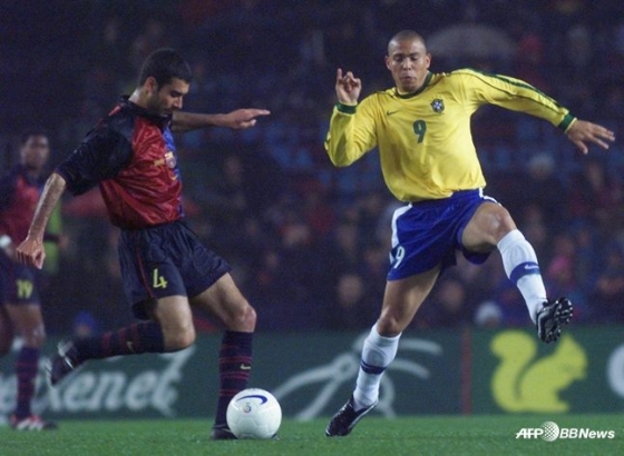 현역 선수 시절 펩 과르디올라(왼쪽)와 호나우두. /AFPBBNews=뉴스1