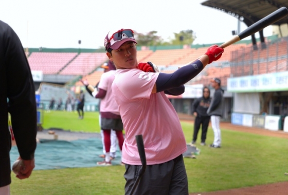 현재 김동헌은 지난 시즌 훈련 프로그램을 그대로 가져가면서 고관절 유연성이나 어깨, 팔꿈치 보강 훈련에도 한창이다. 재활도 순조로워서 캐치볼 거리는 30m로 늘렸고, 이번 주부터는 타격 훈련도 본격적으로 시작한다.