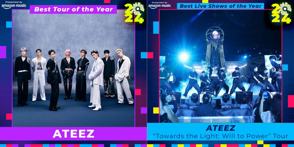 미국 음악 전문 매체 컨시퀀스의(Consequence) 발표에 따르면, 에이티즈는 2024 월드투어 '투워즈 더 라이트 : 윌 투 파워(TOWARDS THE LIGHT : WILL TO POWER)'를 통해 '2024년 K팝 연감(The 2024 K-Pop Yearbook)'에서 '올해의 베스트 투어(Best Tour of the year)'와 '2024년 베스트 라이브 쇼(The Best Live Shows of 2024)'에 잇달아 선정되었다.
