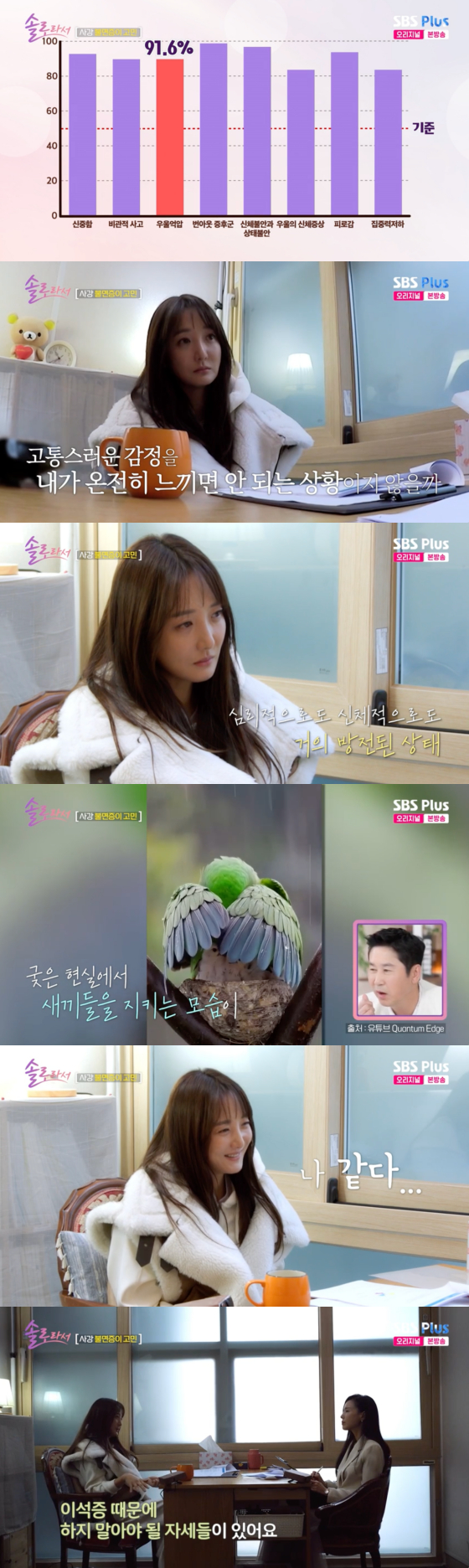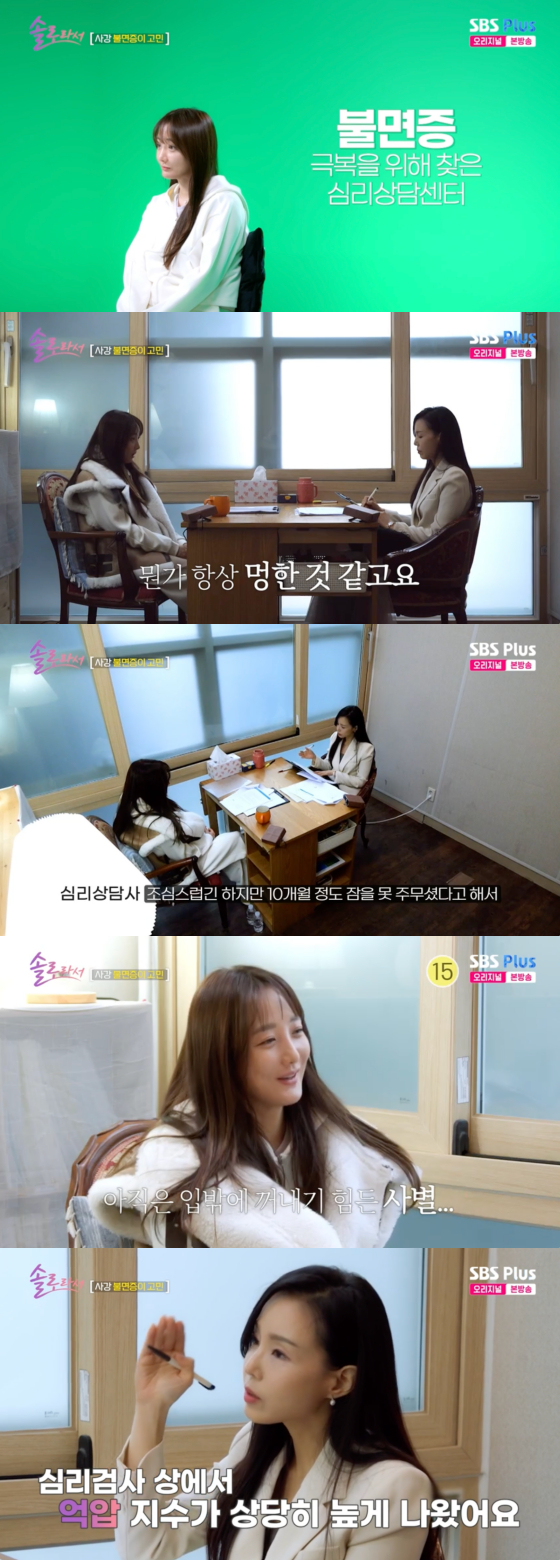 17일 방송된 SBS플러스, E채널 예능 프로그램 '솔로라서'에서는 사강이 불면증 치료를 위해 심리상담센터를 찾는 모습이 그려졌다.