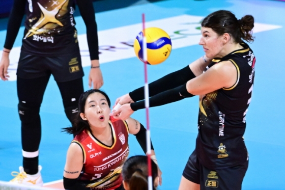 괜한 자신감이 아니었다. 정관장은 1,2세트를 따내며 기분 좋게 시작했다. 부키리치는 1세트 팀 공격의 50%를 담당하며 10득점, 2세트엔 56.25%의 공격 점유율을 보이면서도 11득점으로 팀을 승리에 한 발짝 앞으로 다가서게 했다.