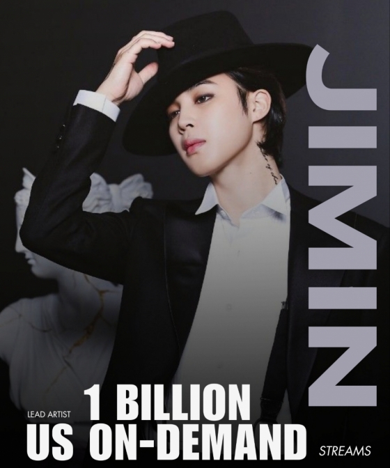 지민은 12월 8일 '리드 아티스트'(Lead Artist)로서 미국 '온디맨드'(On-Demand) 10억 스트리밍을 돌파했다.