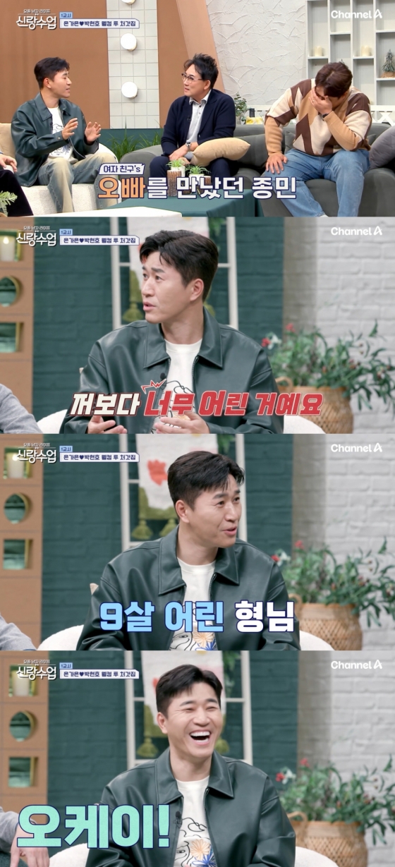 이에 김종민은 "그러기엔 너무 어리다. 저보다 9살 어리다. 저를 형님으로 모시겠다 해서 오케이라고 했다"고 웃었다.