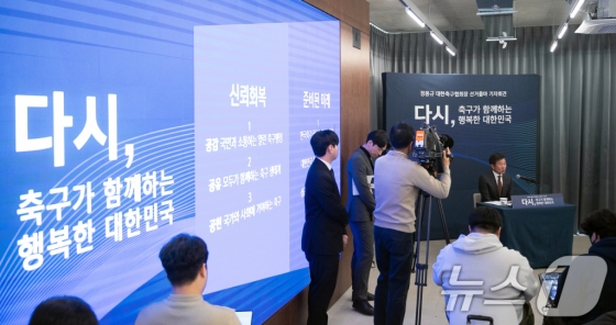 정 회장 제55대 축구협회장 출마 기자회견 일문일답
