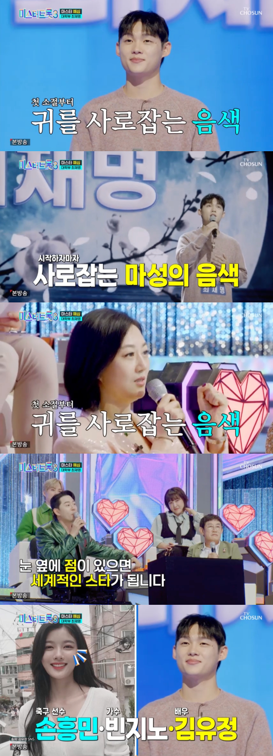 김연자 역시 "무대에서 노래할 게 아니라 마스터 쪽으로 와도 된다. 완벽하다. 발성, 발음은 물론이고 여유까지 갖췄다"고 최재명을 극찬했다.