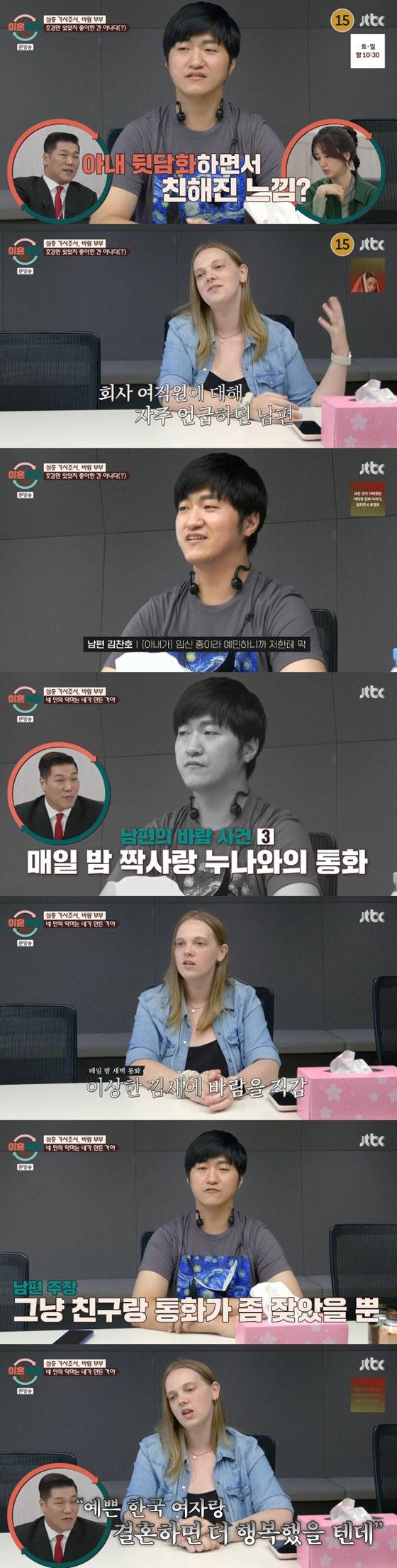 한국인 남편은 고등학교 때 짝사랑하던 아는 누나와도 바람을 피웠다고. 그는 "처음엔 (누나와) 카톡만 했는데, 전화를 걸더라"고 설명했다.