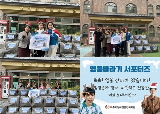 임영웅 팬클럽 '영웅바라기 서포터즈'는 12월 20일 파주시 장애인 가정을 위한 '영웅산타 원정대'로 파주시장애인종합복지관(관장 홍정숙)을 방문해 620만 원 상당 겨울 이불 66채를 전달했다.
