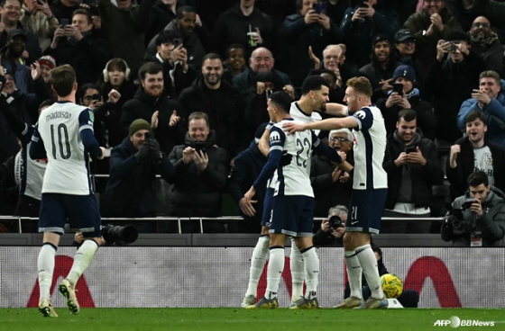 토트넘은 20일 오전 5시(한국시간) 영국 런던의 토트넘 홋스퍼 스타디움에서 열린 2024~2025 잉글랜드 카라바오컵 8강 맨체스터 유나이티드와 맞대결에서 난타전 끝에 4-3으로 이겼다. 이로써 토트넘은 대회 4강에 진출, 우승을 위한 여정을 이어갔다. 토트넘을 비롯해 아스널, 뉴캐슬, 리버풀이 4강 무대에 올랐다.