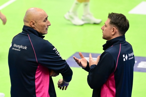 투리노 다니엘레(오른쪽) 코치와 아본단자 감독. /사진=한국배구연맹(KOVO) 제공