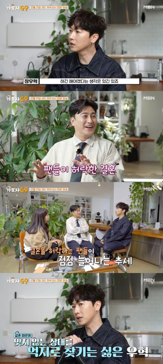 오는 21일 방송되는 MBN 리얼 버라이어티 '가보자GO' 시즌3 선공개 영상에서는 원조 아이돌 장우혁이 등장해 결혼에 대한 생각을 밝혀 눈길을 끈다.