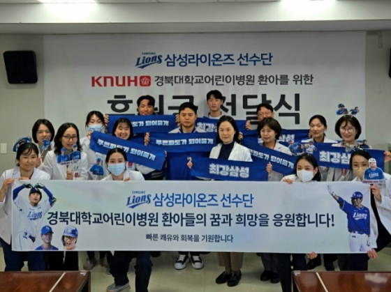 삼성 라이온즈 선수들이 20일(금) 대구대학교법인 영광학원(장애우 장학재단)과 경북대학교 어린이병원(칠곡)을 방문해 총 7400만원의 사회공원활동 수익금을 전달했다.