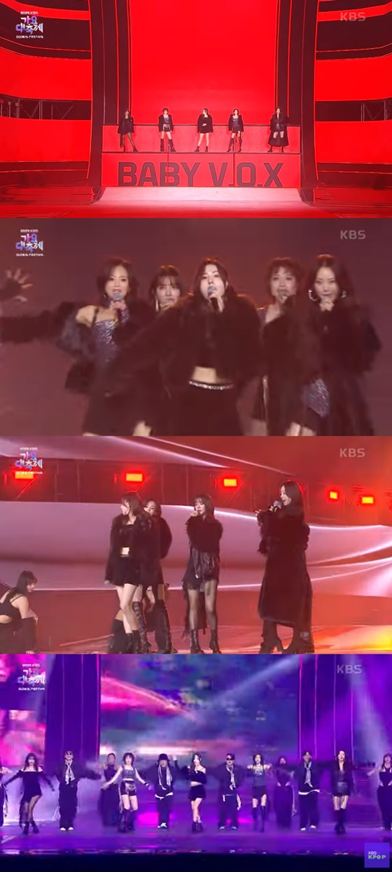 이날 베이비복스는 5명이 함께 등장해 완전체 무대를 펼쳤다. 먼저 베이비복스는 'Get Up'과 '우연' 무대를 선보였다.